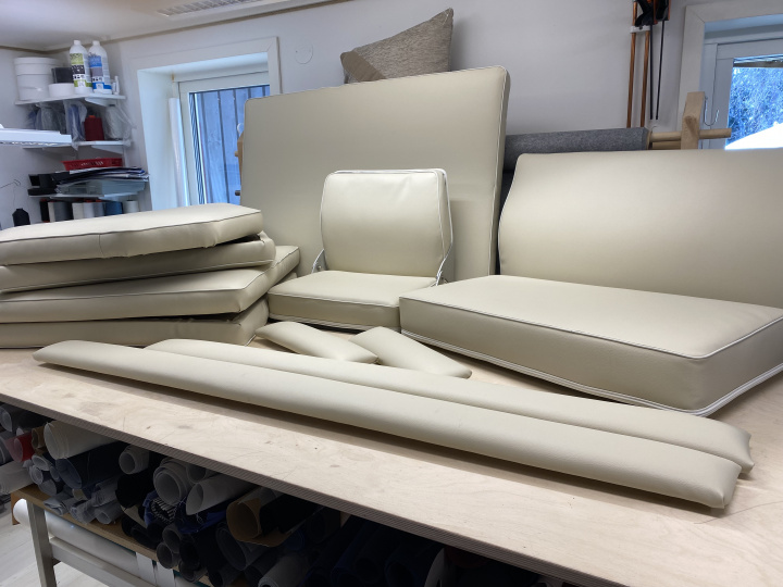 Byte av dynor i båten ger känslan av en helt ny båt. Vi tillverkar nya dynor och byter gamla trasiga detaljer. Passa på att piffa upp med nya färger, små detaljer som ger ett helt nytt intryck av din båt. Vi kan både klä om gamla dynor och tillverka helt nya åt dig.